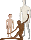 Schaufensterpuppen - Die Schaufensterpuppe gehört zu den jüngsten Kunstfiguren, die im 17 Jahrhundert erstmals als Modepuppe zum Vorzeigen edler Gewänder reicher Leute zum Einsatz kam und lediglich aus einem Torso bestand. Im 18. Jahrhundert diente die Kleiderpuppe, die nach den Maßen des Besitzers gefertigt wurde als Schneiderpuppe bzw. Schneiderbüste, an dieser der Schneider die anzufertigenden Kleider jederzeit anpassen und Maß nehmen konnte. Die eigendliche Schaufensterpuppe als Bestandteil der Ladeneinrichtung und zum Ausstellen von Kleidung im Schaufenster entstand im 19. Jahrhundert. Bis Dato wurden die kopflosen und beinlosen Schaufensterpuppen aus den Materialien Leder, Pappe, Eisen, Gips und Holz gefertigt. Zwischenzeitlich folgten die Wachs Mannequin Puppen, deren Gestalt allerdings erheblich unter der Hitze der Schaufensterbeleuchtung litt und sich somit nicht durchzusetzen vermochte. Erst Ende des 19. Jh. entwickelte sich die heutige Schaufensterpuppe mit Kopf, beweglichen Armen, langen wohlgeformten Beinen und Fingern, stehend, wie sitzend mit farbig gemalten oder eingesetzten Glasaugen, Fingernägeln, teilweise mit Echthaar- Wimpern, Augenbrauen und Perücken in verschiedenen Körpergrößen, Konfektionsgrößen, unterschiedlichen Haar- und Hautfarben, als weibliche und männliche Mannequin Schaufensterpuppen, sowie als Kinder und Baby Schaufensterpuppe aus Kunststoff, Latex und Plexiglas mit angenehmer ebener Oberfläche und natürlicher Mimik.
